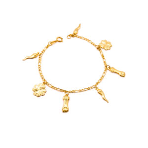 Pulseira com pingentes pendurados de figa, trevo e pimenta(PL 5021)