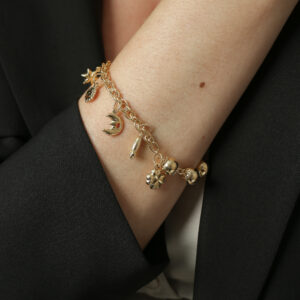 Pulseira com bolinhas de metal e pingentes(PL 5042)