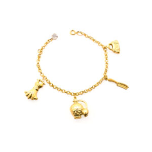 Pulseira Elo Português com Coração, Cadeado, Trevo e Chave(PL 5022)